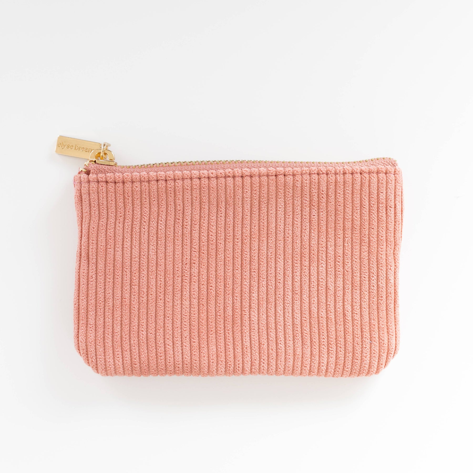 A coin purse that is designed to be compact and portable, it effortlessly fits into your bag, ensuring your knick knacks or credit cards are always within reach. Features a gold metal zipper, cotton/poly corduroy, and cotton lining.