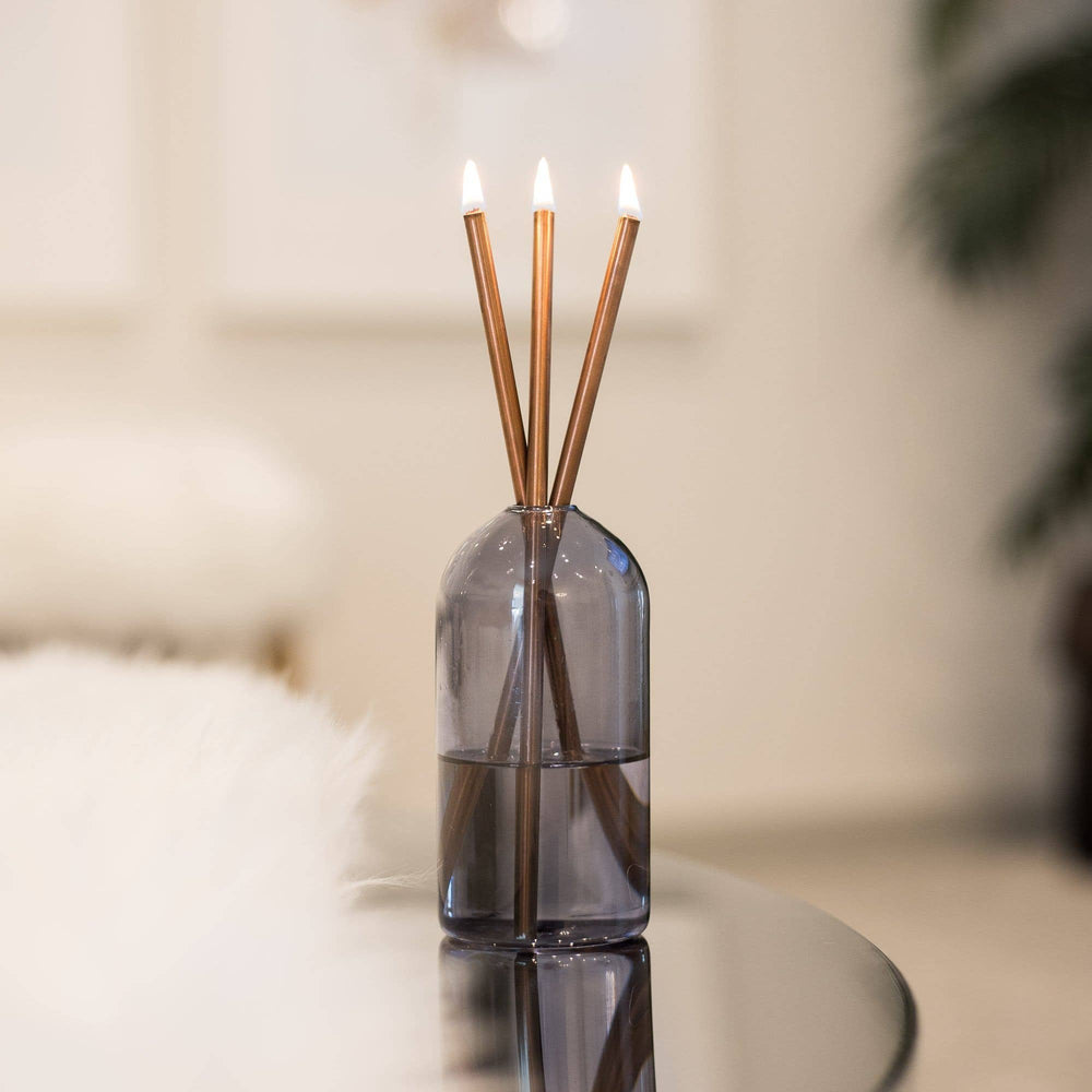 Add at least three inches of Pristine Oil® into your vase, gently place your Everlasting Candles into the vase, once the candles have soaked in the oil for 30 minutes, light the tops and enjoy!