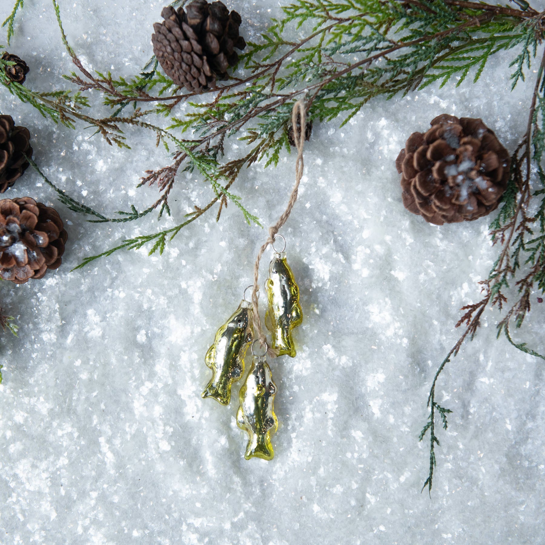 A simple ornament featuring the catch of the day -- three glass fish hanging on a line. A nice gift for the fisherman in your life!