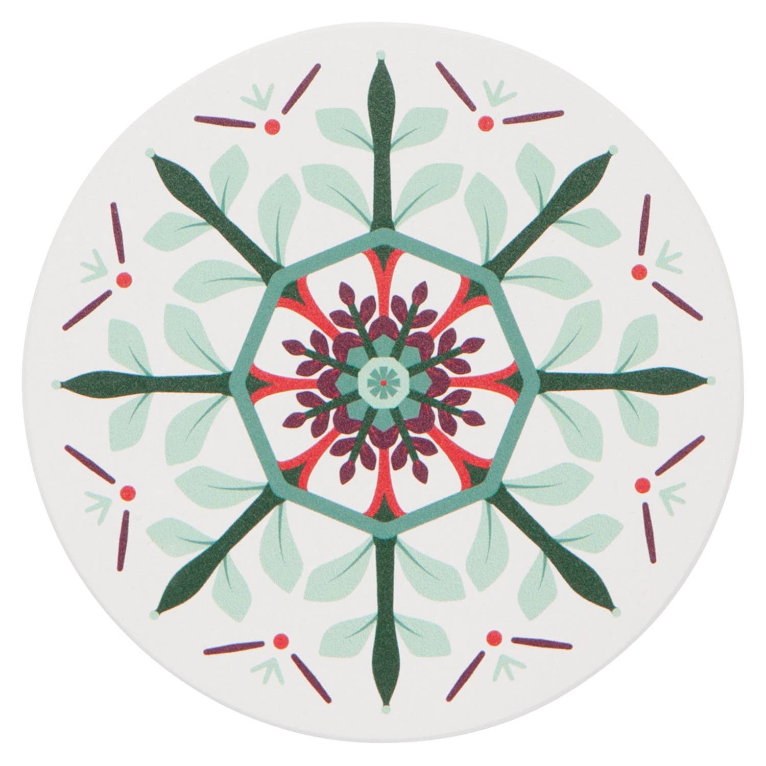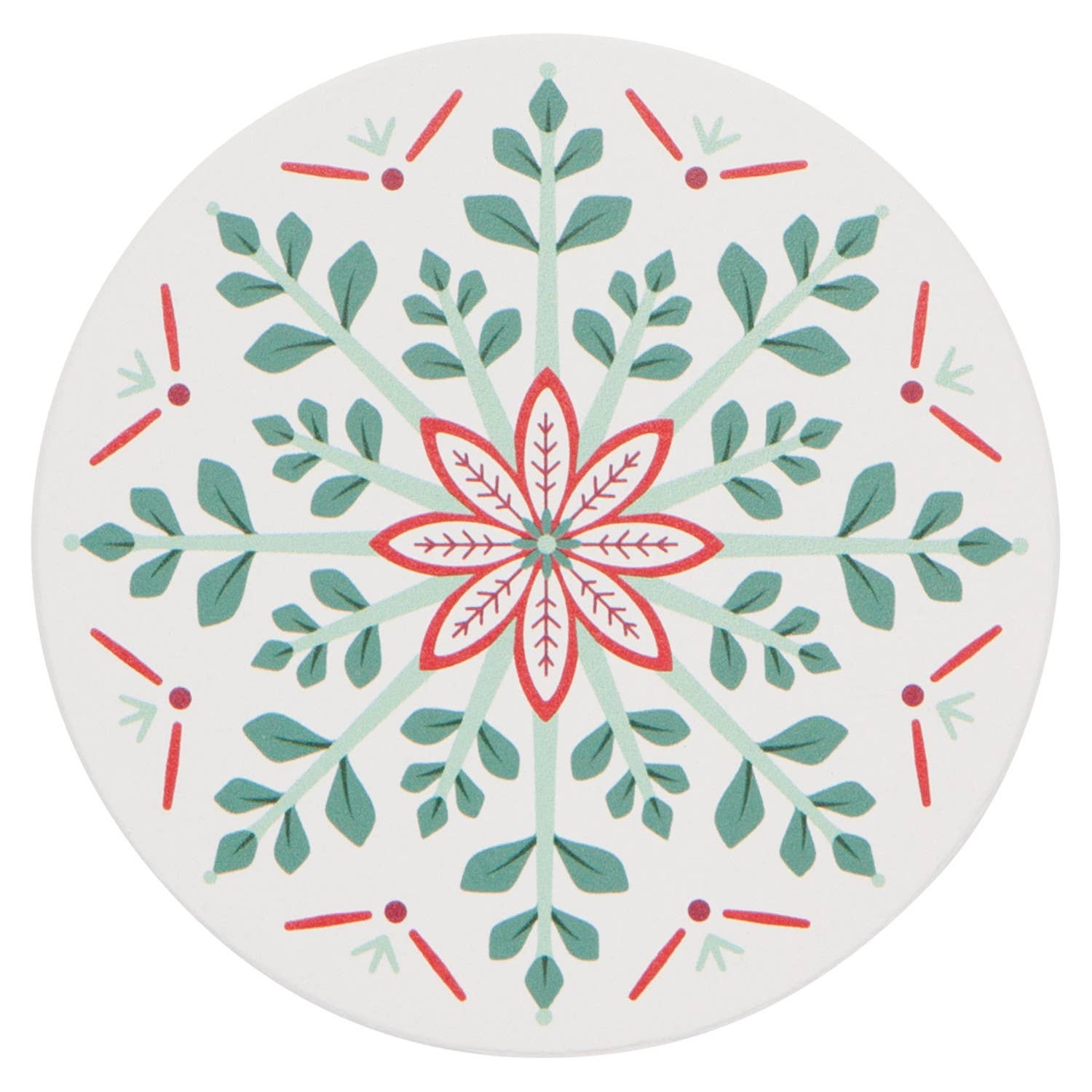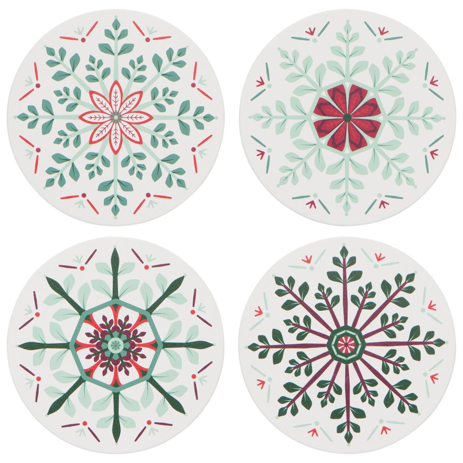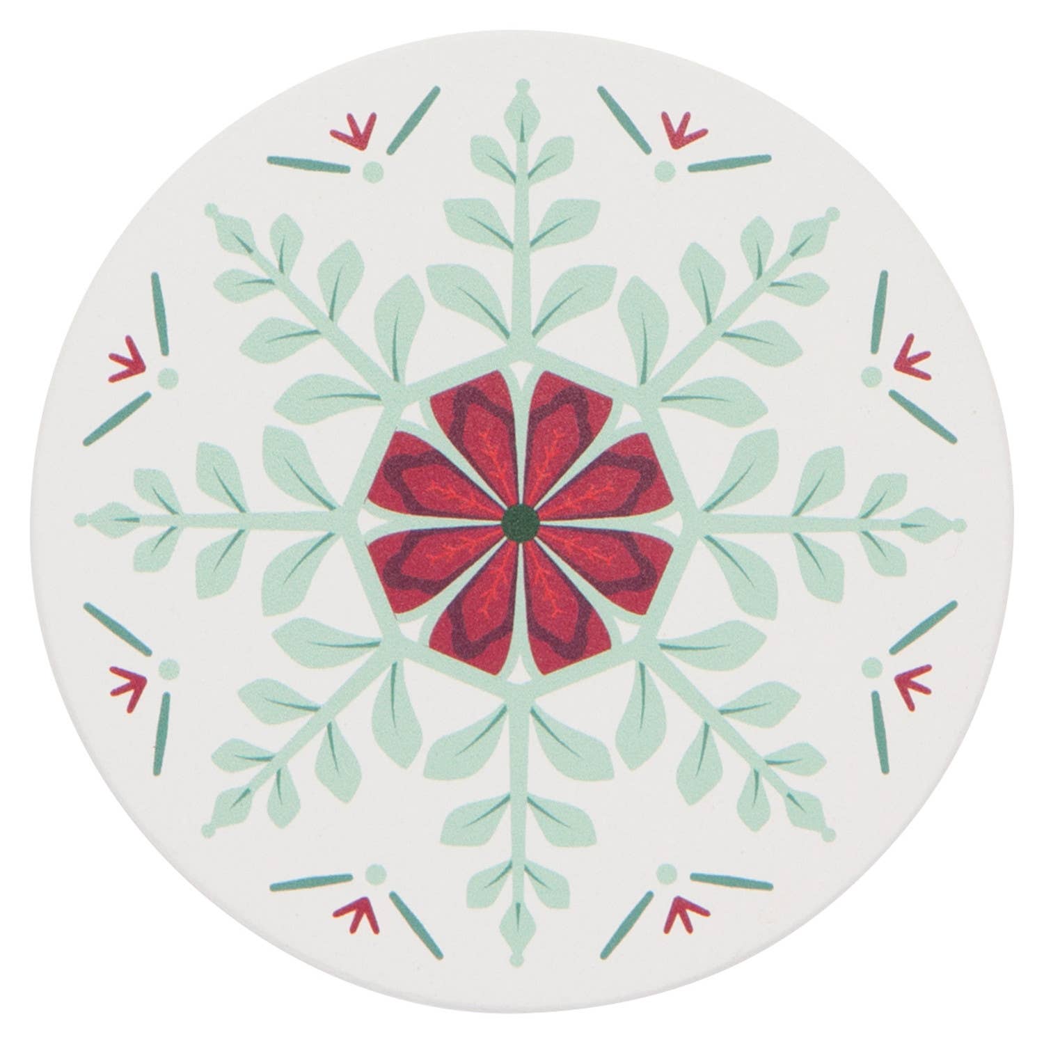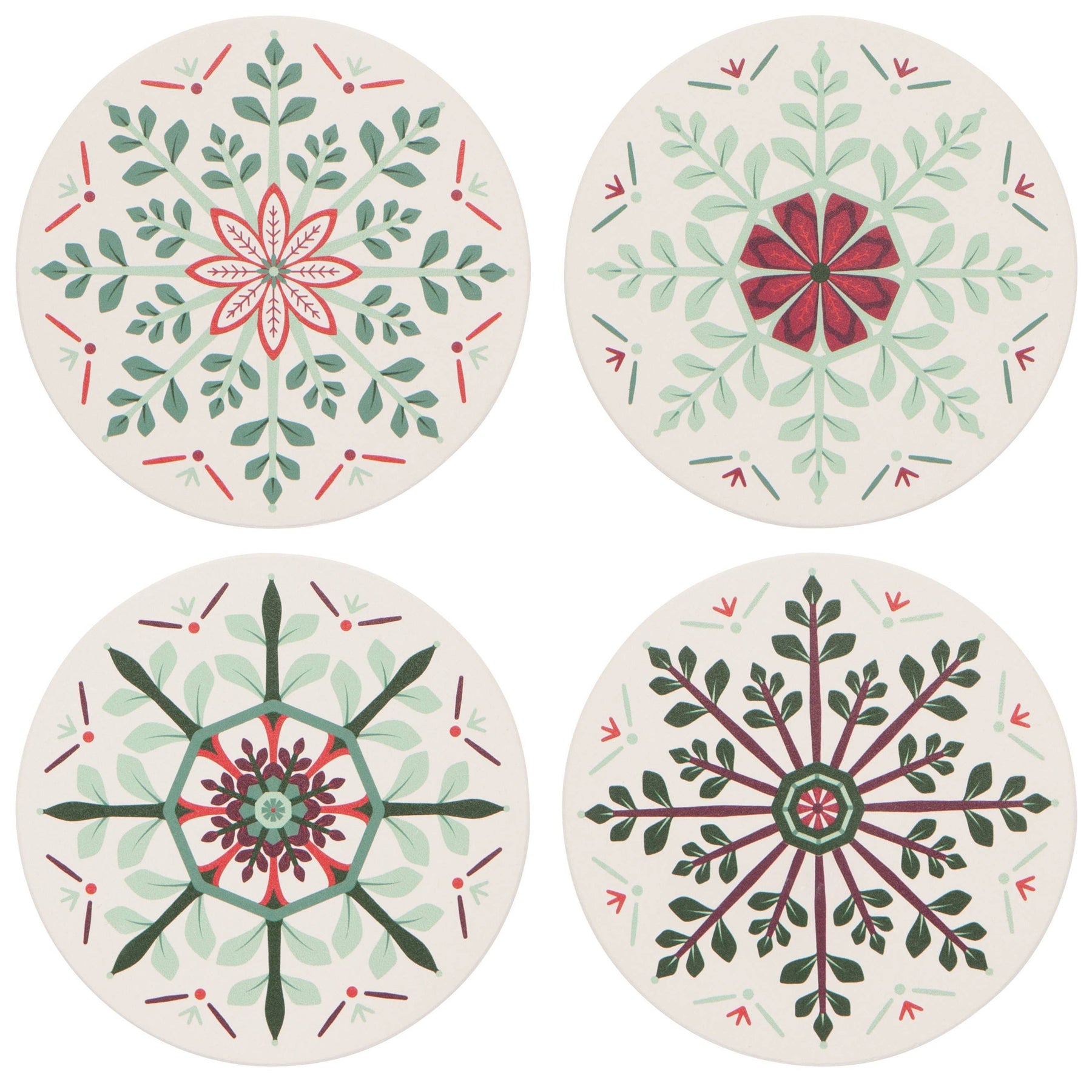 Treat guests to cinnamon cocoa or merry mocktails served on this prismatic set of Good Tidings Soak Up Coasters from Now Designs. Crafted from porous stoneware, this striking set of 4 drink coasters protects your surfaces from cold and hot beverages alike. The quality construction allows each one to soak up condensation and small spills, resulting in drip-free glasses and mugs. The cork base offers a smooth barrier to shield table tops or counters from scratches. Each set comes attractively boxed, making an ideal gift for housewarming parties or a generous hostess.