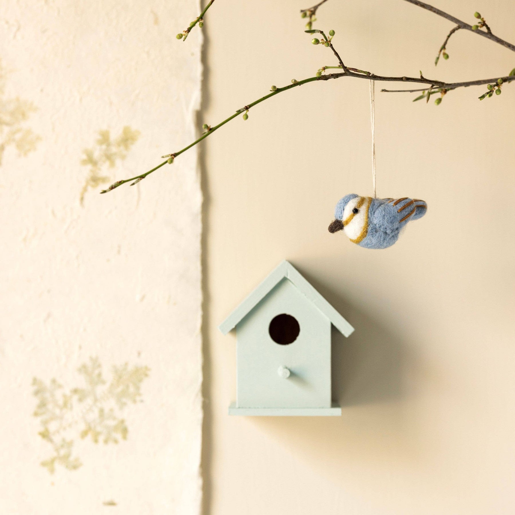 The blue Spinus bird is full of song and spring mischief. A cheerful pop of color for your Easter arrangements or window displays.