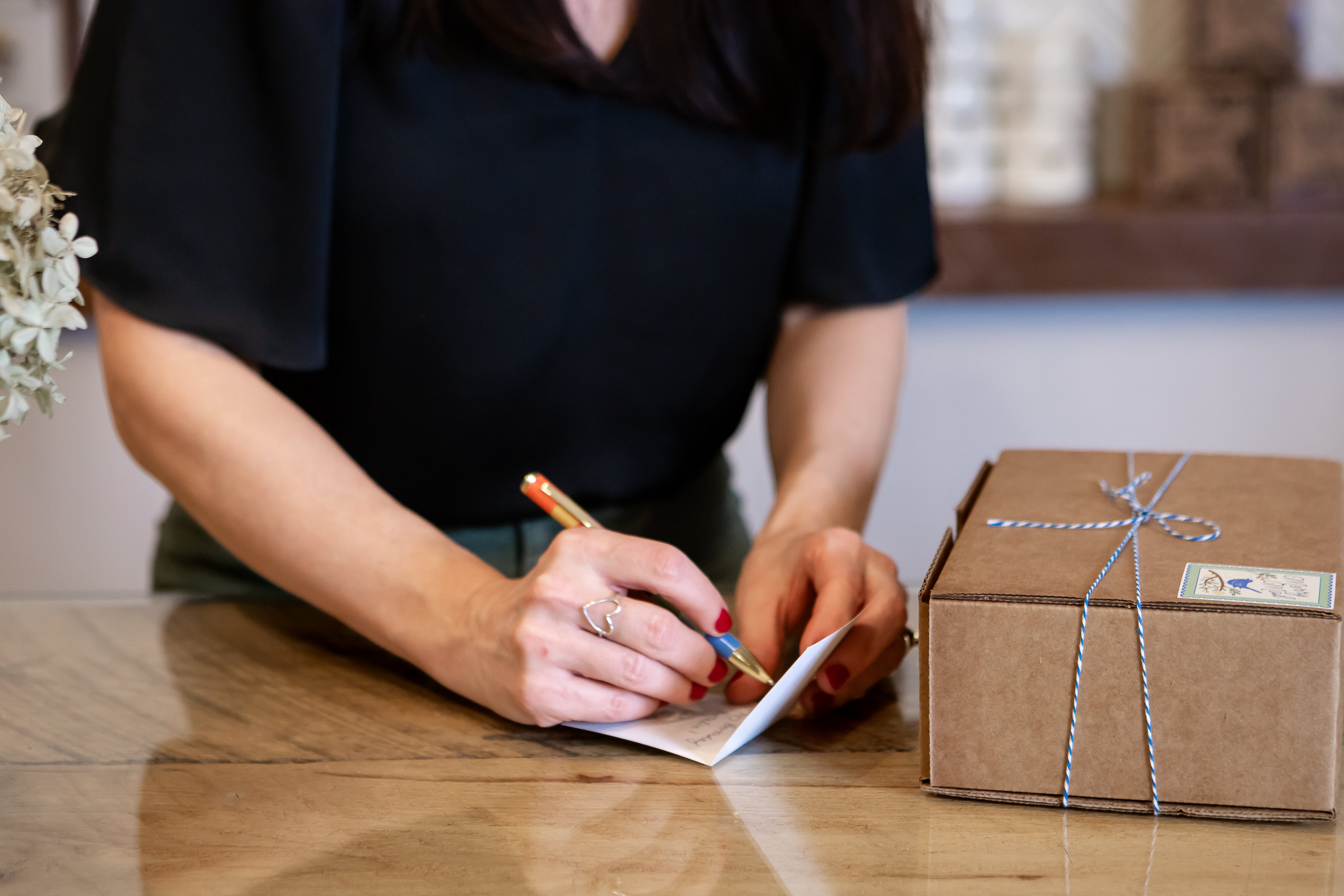 Local deliveries and shipments will arrive in our signature Merry Mail kraft box with Merry Mail sticker, twine wrap, and a handwritten note in a sealed envelope with heart sticker. All prices are removed from the products before thoughtfully adding them to the box with crinkle paper.